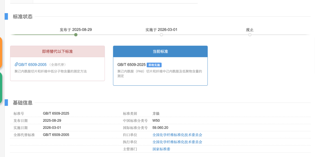 1. GB/T 6509-2025:PA6 切片和纤维的成分测定